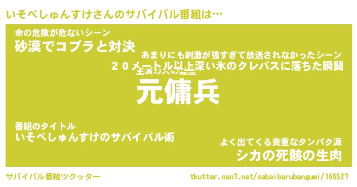 | 胡散臭い通販商品みたいなあだ名 | 『億万長者になれるブレスレット…その名も「いそべしゅんすけ」』 |