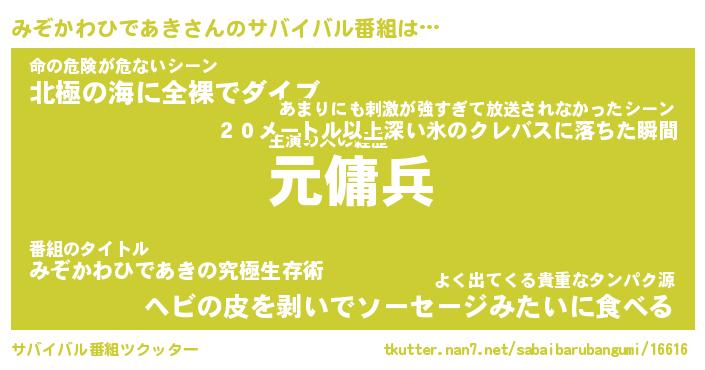| 胡散臭い通販商品みたいなあだ名 | 『億万長者になれるブレスレット…その名も「みぞかわひであき」』 |