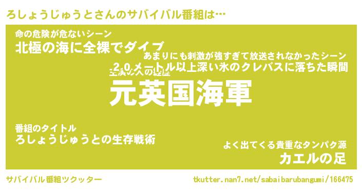 | 胡散臭い通販商品みたいなあだ名 | 『必ず成功するブレスレット…その名も「ろしょうじゅうと」』 |