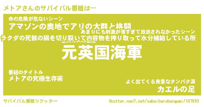 | ヒーロー風カッコイイあだ名 | 『スーパーメトア』『ウルトラメトアマン』 |