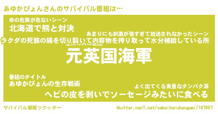 | 伝説のあだ名 | 『伝説のスナイパーあゆかぴょん』 |