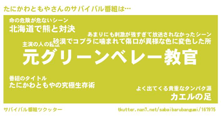 | 伝説のあだ名 | 『伝説のスナイパーたにかわともや』 |