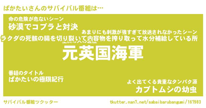 | 伝説のあだ名 | 『伝説のスナイパーぱかたい』 |