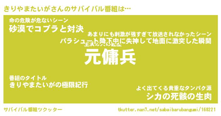 | 伝説のあだ名 | 『封印されしスナイパーきりやまたいが』 |