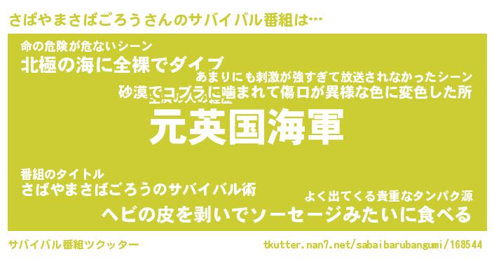 | 伝説のあだ名 | 『伝説のスナイパーさばやまさばごろう』 |