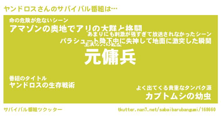 | 伝説のあだ名 | 『封印されしスナイパーヤンドロス』 |