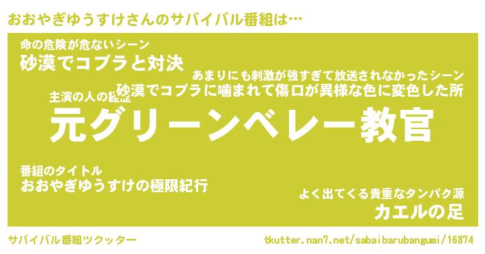| 伝説のあだ名 | 『伝説のスナイパーおおやぎゆうすけ』 |