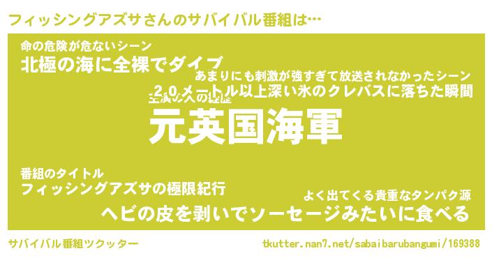 | 伝説のあだ名 | 『伝説の傭兵フィッシングアズサ』 |