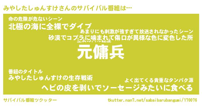 | 胡散臭い通販商品みたいなあだ名 | 『億万長者になれるブレスレット…その名も「みやしたしゅんすけ」』 |