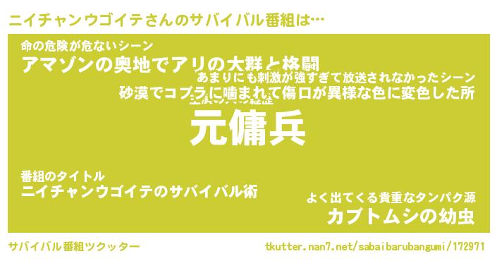 | ツイッター | ニイチャンウゴイテさんのツイッターID『namakemono_man』 |
