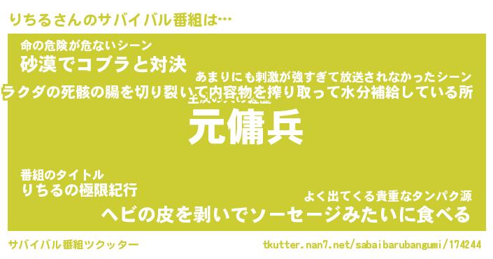 | 伝説のあだ名 | 『封印されし傭兵りちる』 |