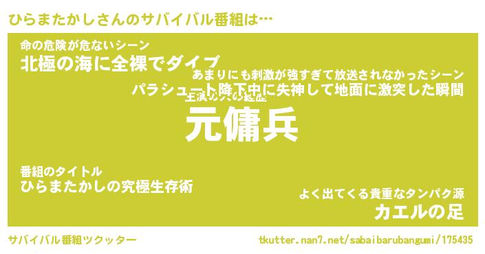 | ヘコむあだ名 | 『ひらにゅー』『つくし』『ひら太郎』 |