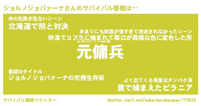 | 胡散臭い通販商品みたいなあだ名 | 『億万長者になれるブレスレット…その名も「ジョルノジョバァーナ」』 |