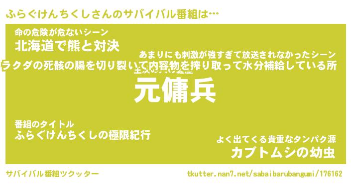 | 胡散臭い通販商品みたいなあだ名 | 『億万長者になれるブレスレット…その名も「ふらぐけんちくし」』 |