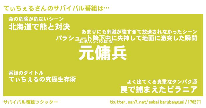 | 胡散臭い通販商品みたいなあだ名 | 『億万長者になれる霊験あらたかなお札…その名も「てぃちぇる」』 |