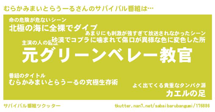 | 欧米人風あだ名 | 『マイケルむらかみまいとらうーる』 |