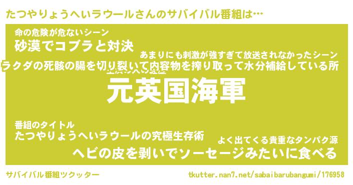 | 胡散臭い通販商品みたいなあだ名 | 『必ず成功するブレスレット…その名も「たつやりょうへいラウール」』 |
