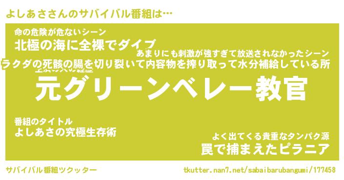 | ヘコむあだ名 | 『よしにゅー』『つくし』『よしを』 |