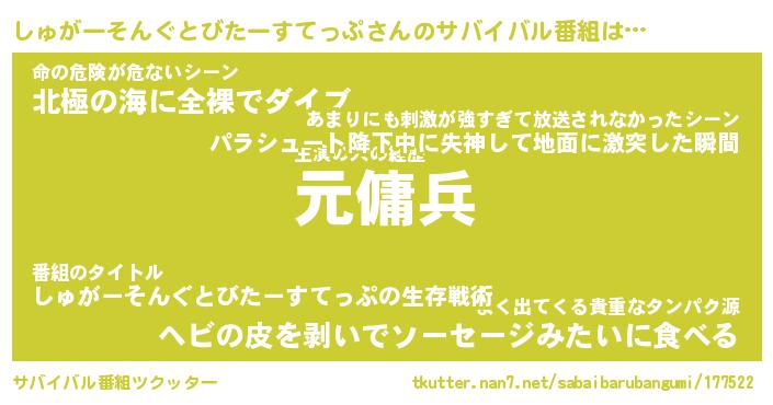 しゅがーそんぐとびたーすてっぷさんのサバイバル番組をツクッター!