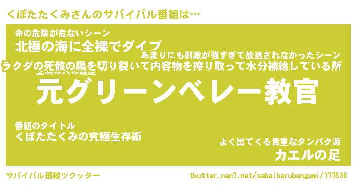 | ヒーロー風カッコイイあだ名 | 『スーパークボタタクミ』『炎刃騎士クボ』 |