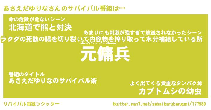 | 胡散臭い通販商品みたいなあだ名 | 『億万長者になれるブレスレット…その名も「あさえだゆりな」』 |