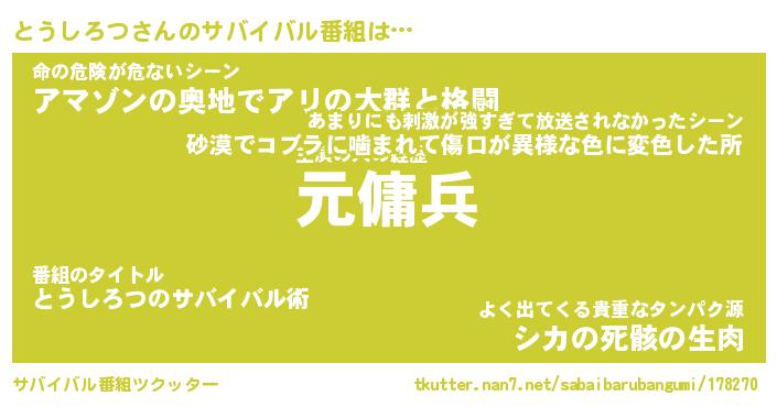 | 胡散臭い通販商品みたいなあだ名 | 『億万長者になれる水晶球…その名も「とうしろつ」』 |