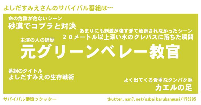 | 胡散臭い通販商品みたいなあだ名 | 『必ず成功するブレスレット…その名も「よしだすみえ」』 |