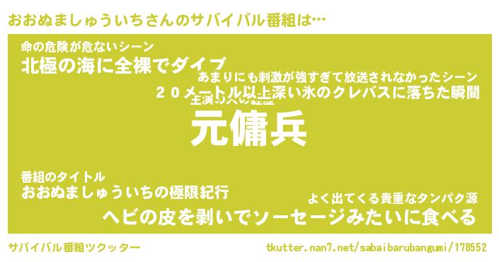 伝説のあだ名 | 『封印されし傭兵おおぬましゅういち』 |