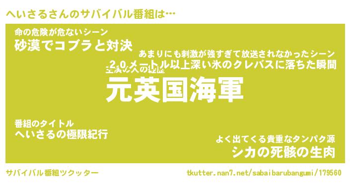 | 意味不明あだ名 | 『ペロリンへいさる』『永久保存へいさる』 |