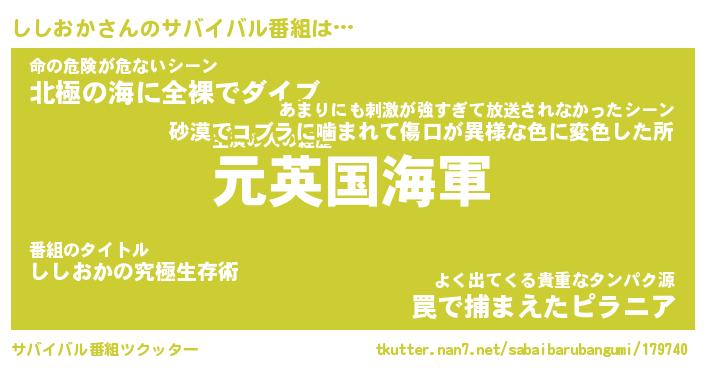 | 伝説のあだ名 | 『伝説のスナイパーししおか』 |