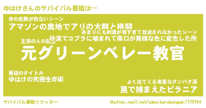 | ヒーロー風カッコイイあだ名 | 『スーパーユハケ』『ウルトラゆはけマン』 |