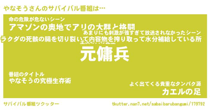 | 伝説のあだ名 | 『封印されしスナイパーやなそう』 |