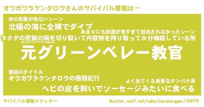 | 伝説のあだ名 | 『伝説のスナイパーオウガワラケンタロウ』 |