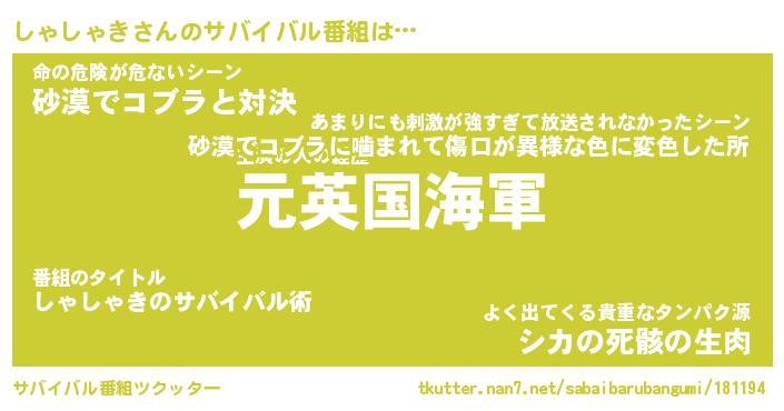 | ヒーロー風カッコイイあだ名 | 『スーパーシャシャキ』『魔戒騎士シャ』 |