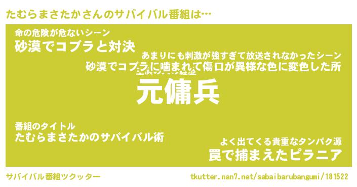 | 胡散臭い通販商品みたいなあだ名 | 『億万長者になれるブレスレット…その名も「たむらまさたか」』 |