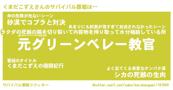 | ヒーロー風カッコイイあだ名 | 『スーパークマダコズエ』『魔戒騎士クマ』 |
