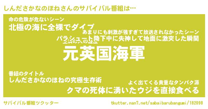 | 伝説のあだ名 | 『伝説のスナイパーしんださかなのほね』 |