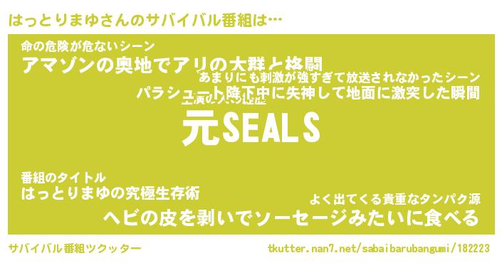 | 伝説のあだ名 | 『不死鳥のスナイパーはっとりまゆ』 |