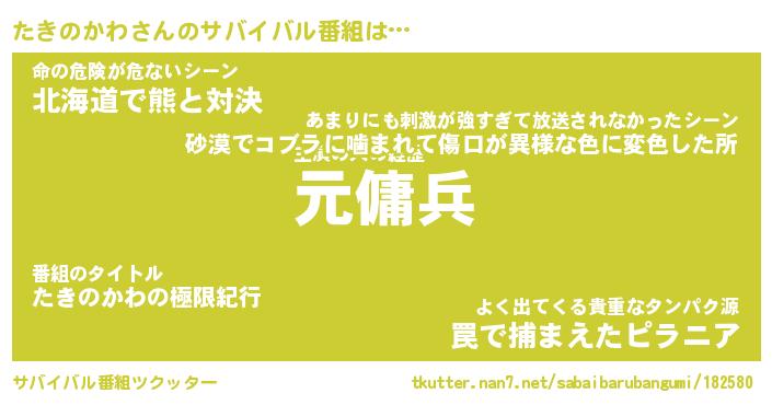 | 胡散臭い通販商品みたいなあだ名 | 『億万長者になれる霊験あらたかなお札…その名も「たきのかわ」』 |