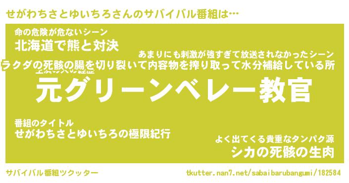 | 胡散臭い通販商品みたいなあだ名 | 『モテモテ間違いなし水晶球…その名も「せがわちさとゆいちろ」』 |