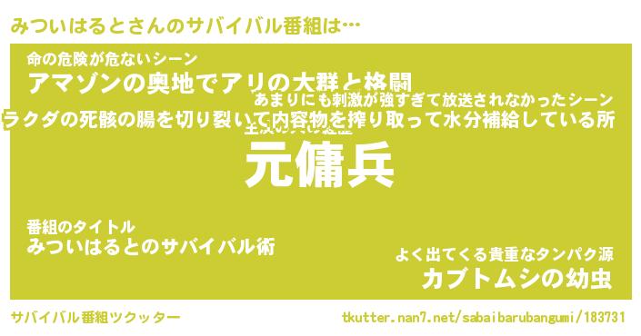 | 胡散臭い通販商品みたいなあだ名 | 『億万長者になれるブレスレット…その名も「みついはると」』 |