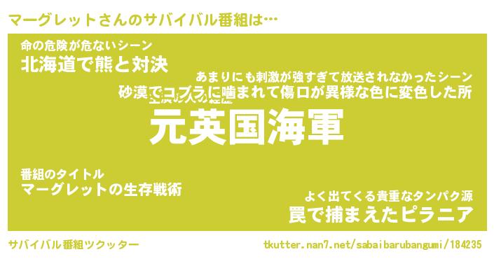 | 伝説のあだ名 | 『伝説のスナイパーマーグレット』 |