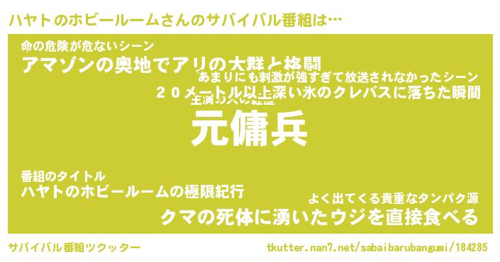 | 胡散臭い通販商品みたいなあだ名 | 『億万長者になれるブレスレット…その名も「ハヤトのホビールーム」』 |