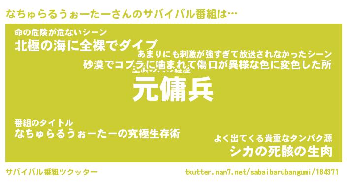| 胡散臭い通販商品みたいなあだ名 | 『億万長者になれるブレスレット…その名も「なちゅらるうぉーたー」』 |