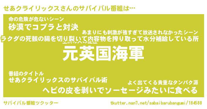 | 伝説のあだ名 | 『伝説の竜騎士せあクライリックス』 |