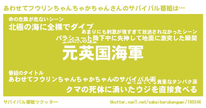 | 伝説のあだ名 | 『伝説のスナイパーあわせてフウリンちゃんちゃかちゃん』 |