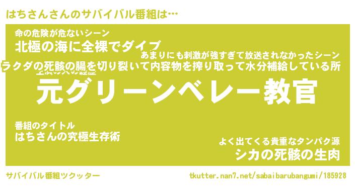| 伝説のあだ名 | 『伝説のスナイパーはちさん』 |