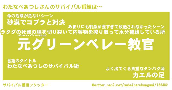 | 伝説のあだ名 | 『不死鳥の傭兵わたなべあつし』 |