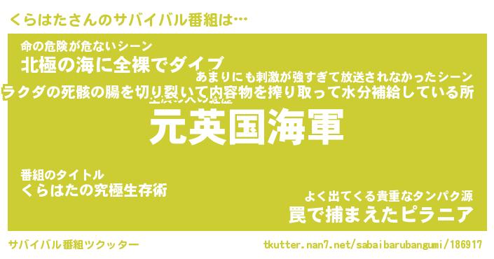 | 意味不明あだ名 | 『ペロリンくらはた』『永久保存くらはた』 |