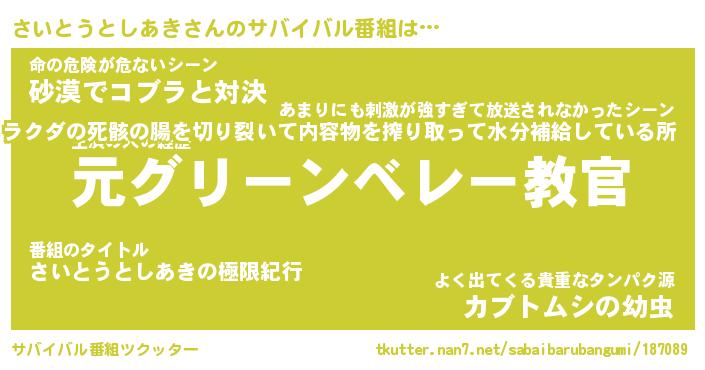 | 伝説のあだ名 | 『不死鳥の傭兵さいとうとしあき』 |